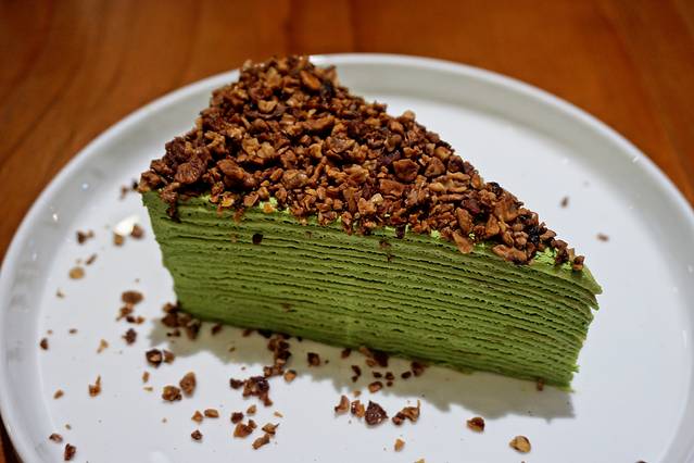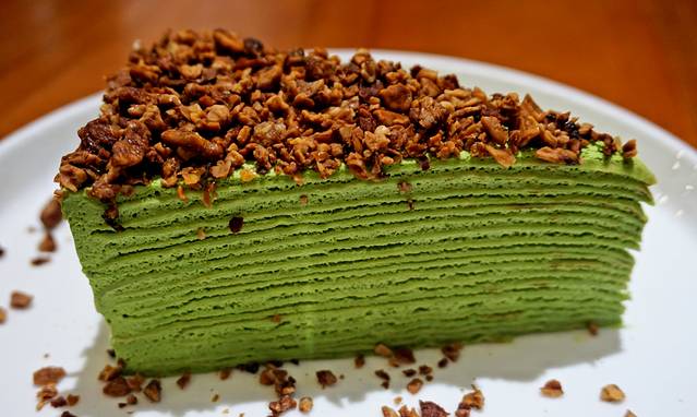 山核桃抹茶千层:清香的抹茶搭配香浓的山核桃,尽管上下只是轻轻的划一薄片,层层清晰缺不会散落。