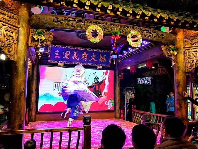 海鲜川菜都有了,来成都串串和火锅那可是少不了的,宽窄巷子春熙路也有了,那我就来一家武侯祠锦里附近的老招牌火锅店【江北老灶三国义府】,来这里不仅是吃火锅,还可以欣赏四川的经典川剧变脸。