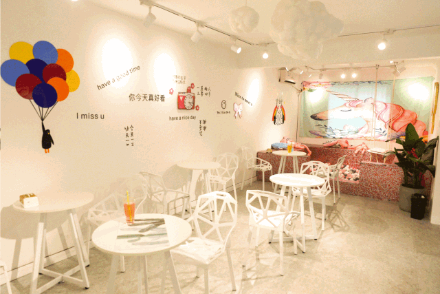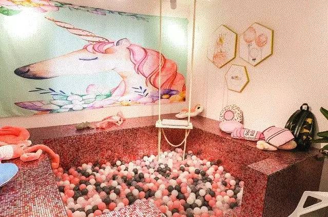 每一个角落都适合拍照,进门就被粉嫩的“独角兽泳池”给惊艳到了,秋千、泳池、气球,还有比这更适合拍照的吗?