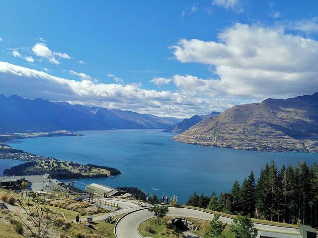 第二天坐Skyline去了山顶的观景台,随手拍都是大片,可当明信片可当桌面屏保,玩了山顶的LUGE滑板车,小刺激,老少皆宜,建议起码要买3圈的,第1圈还是比较紧张的,第2圈就是享受,第3圈还可以挑战下更高的难度。本来今天还有一个重头戏是要在山顶玩滑翔伞的,但是因为风太大取消了,而且小哥说不仅今天取消了明天的也取消了,目前只有后天有可能飞,问我们后天还在不在皇后镇要不要改时间,我们后天下午2点的飞机就要离开,那就改后天的最早一班,但是具体后天能不能飞还得看后天早上的天气。