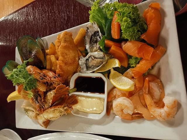 接着去了萤火虫洞,不是我们常规想的那种飞来飞去的萤火虫,而是不会动的一种发蓝色光的蠕虫,具体自己去百度科普,说实话洞比我想象中小太多,但是坐在船上亲眼看到繁星点点的时候还是非常震撼,就像魔戒里精灵居住地的点点星光。回到市区大概是晚上7点,我们去了一家叫TONY的店,点了海鲜拼盘和牛排,这家店应该能排到我整个旅行最好吃的店之一,而且价格经济实惠,海鲜新鲜量大,牛排满足感十足,真的在kiwi吃牛羊肉几乎不会出错,我们在超市买的牛排自己煎,完全没有火候和酱汁,就已经非常惊艳。