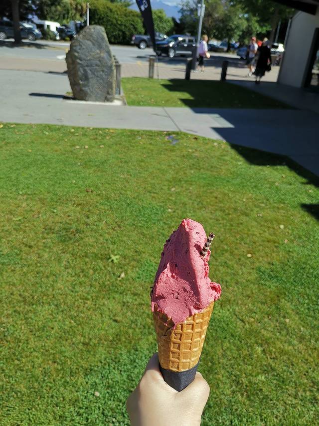 本来以为还没到入住时间不能check in,刚好房间空出来了,酒店让我提前入住了,酒店的房间宽敞干净设施齐全位置也好,在半山腰可以看到湖景,入住时还提供了薯片饼干牛奶巧克力啤酒,整个旅行第二喜欢的酒店。整个皇后镇最有名的就是Freg的三家店,汉堡店无时无刻不在排队,我们点了牛肉和鸡肉,一次性是吃不完2个,但是排了这么久的队只买一个又觉得亏得慌。我们两个一直觉得牛肉的相当一般,反而鸡肉的非常惊艳。旁边同一家的烘培店反而是我们在皇后镇去的最多的店,里面的几款面包都不错,我们不重样的买了3天都没有踩雷的。在皇后镇的第一天我们就去了湖边还有皇后镇公园,到处都是开着房车露营、徒步跑步骑车遛狗的老外,老外的旅行度假方式跟我们真的不太一样,我受影响特别想去徒步一下,奈何圆圆兴致缺缺说我们还是走逛吃逛吃的路线比较合适。