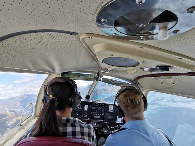 我们在瓦纳卡还有一个行程是去开飞机,我是在淘宝订的LTF公司的,要自己去wanaka的机场没有接送服务,我们是在i-SITE请工作人员帮我们叫了辆出租车,单程20纽,我们没有电话所以只能在i-SITE门口等着,当时我正在吃Patagonia的冰淇淋,工作人员特别可爱,跟出租车司机说,我们是两个人,其中一位女士手上有一个冰淇淋。大概15分钟就能到LFT的机场,看到各种小飞机,先是观看一段安全教育视频(中文字幕无压力),然后机长就带着你飞,在空中的时候换你自己操作,可以左右上下自己嗨,当然我也就敢轻微懂懂方向盘,空中看瓦纳卡真是美爆了,可以看到两个湖还有蜿蜒曲折的河流,远处群山近处农田,开飞机可以免费带一个人,我当然是带着我家圆圆,开完飞机机长还会帮你合影,另外有一张证书算是纪念。LFT有中文机长可以选,不过要另外加钱,我个人是觉得不需要,英文交流非常简单,而且看过中文字幕的视频基本无压力。
