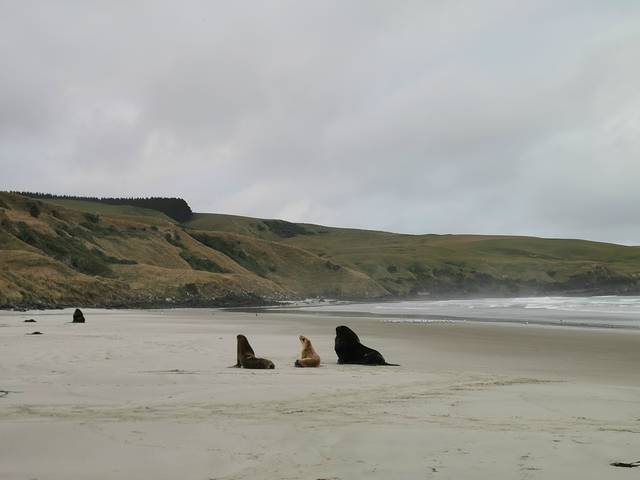 第二天下午订了一个野生动物半日游的行程,一行大概10人,下午3点开始到晚上10点结束,导游开着车带我们去看了各种野生的鸟类,去保育区看了皇家信天翁,然后去了一处私人领地,在悬崖峭壁看了海豹,沙滩上看了海狮,离海狮真的是只有5米远,海狮都不怕人完全不会鸟你,然后又在岗哨里看了企鹅,看着它们从海里游上来回到自己的巢穴里,企鹅大多比较胆小怕人,大多只能远观,当然也有例外,我们就碰到两只,一只就在路边草丛里等着,我们一队人走过去疯狂拍照都不挪,另外一只就从岗哨前慢悠悠走过,不知道是没看到我们还是怎么的。我第一次知道企鹅不止在南极北极,以及企鹅的巢在山上,每天从海里回来要爬这么高的山。野生动物的行程非常推荐成年人,小孩子反而不是非常合适,第一是真的太冷了风太大了,大夏天的我们都是穿着冲锋衣羽绒服的,第二有些悬崖岗哨爬起来还是挺累的,真心推荐给成年大朋友们,非常值得,跟看动物园完全不同的体验。游览的最后,沙滩上有3只海狮下到海里去,看着它们扑腾着消失在海岸线,你会真正感觉到动物园是囚笼,海阔天空才是家。