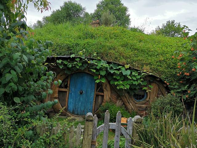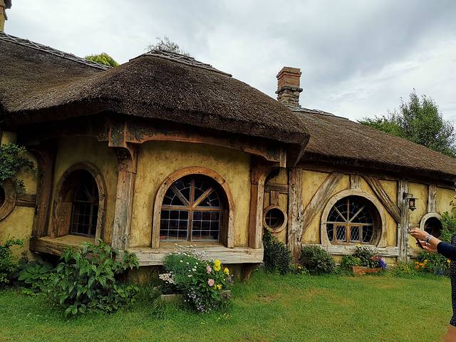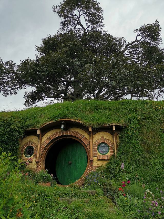 奥克兰的第二天我们订了一个霍比特人村+萤火虫洞的一日游,包含酒店接送,总体来说服务还是挺好的,路上还有水和小零食。霍比特人村真真是电影中的夏尔,一模一样的绵延山丘,牛羊成群,小桥池塘,袋底洞绿龙酒吧,随手拍都好看,激动得我又回味了下魔戒和霍比特人,只可惜这么多小房子都进不去,这能外面拍拍照,游览结束有一杯饮料提供,中饭是自助餐,味道不说多好,但品种还算丰富,据说晚餐相当惊艳,更有电影里的感觉我就不得而知了。