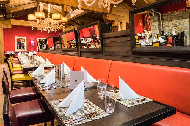 Peisey-Vallandry度假村的餐厅也是相当的有格调,木质的建筑,以木色与红色为整个餐厅的主色调,让餐厅看着很温暖,在这里用餐,也让人感觉食欲大增。