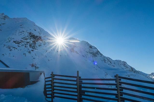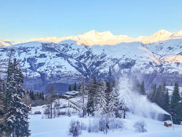 滑雪场位于海拔1600米处,在Les Arcs阳光充足的西部的山坡上,这里的山色优美,太阳升起之后,把雪山美丽的轮廓勾勒得更加动人,一边滑雪,一边赏美景,真的是一件美事。