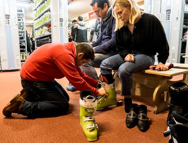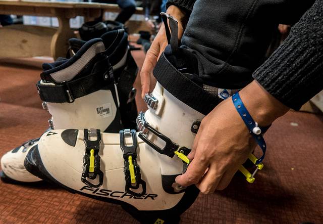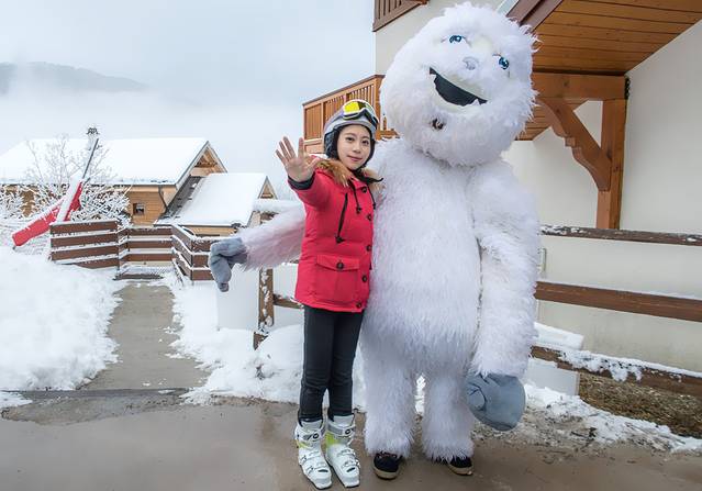 在度假村里,滑雪装备配备齐全,各种尺码的滑雪用具都备有,住客可用先试试雪靴是否适合,度假村的G.O们会帮助没有滑雪经验的住客穿戴雪靴,调试滑雪用具,每一个环节都很严谨认真。度假村里提供单、双板滑雪板、雪仗、滑雪帽,因此滑雪服、雪镜和手套,都是得自己准备的。