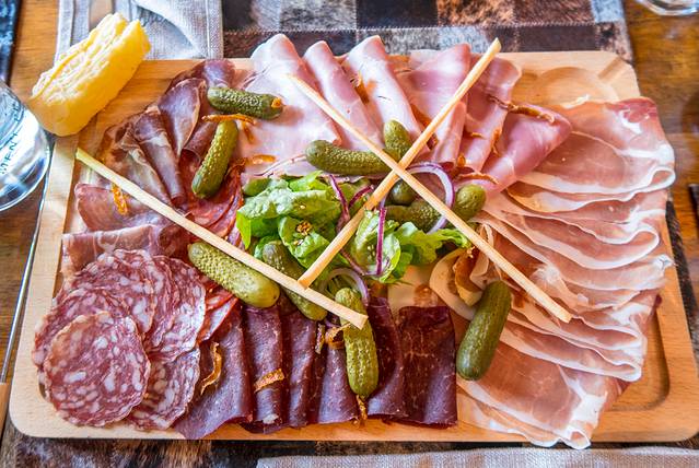 Manu Poisson风味冷盘是 萨瓦 地区的特色美食,冷盘是由 萨瓦 地区优质的禽类,猪、牛肉用盐渍接着用酒洗后制作而成的灌肠切片而得,配上当地特色的酸腌小黄瓜,味道格外清新可口。