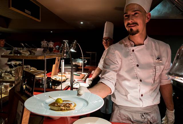 同样的,Peisey-Vallandry度假村的每一顿,都有着很多美味的食物,以及很多本土的好味道等待我们这些外来游客品尝。尤其要提一下的是,这里的鹅肝实在是太好吃了, 法国 不愧是一个食用鹅肝的大国。大厨们把一块肥美的鹅肝,在烧热的铁板上煎得香气扑鼻,看着滋滋跳动的鹅肝油,还没有入口就能想到这块鹅肝的美味。而这里的鹅肝真的没有让人失望,入口即溶、丰腴鲜美、口感极度细腻,所有美好的形容词都无法形容它的美味,只有品尝过的人才能感受到这让人飘飘欲仙的鲜美滋味。
