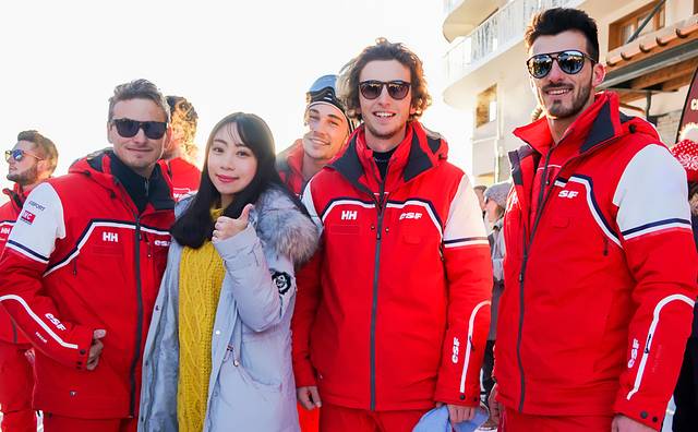 等表演结束后,我赶忙和这些行走的荷尔蒙帅哥们来个合影,他们都是世界著名的滑雪指导机构—— 法国 国立滑雪学校Ecole du Ski Francais(ESF)的教练。在度假村里的滑雪课,都是ESF的教练教学,边看帅哥边学滑雪,也是一个很赞的体验呐。