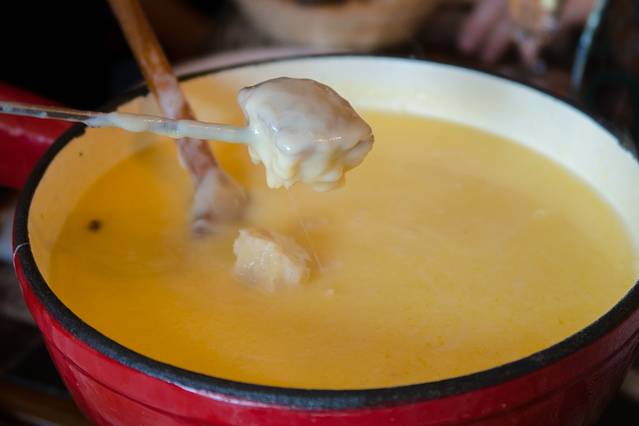 萨瓦 奶酪火锅在 阿尔卑斯山 脉这一地区,都十分流行,尤其在外滑雪时,当地人最喜欢吃这个火锅。 萨瓦 奶酪火锅的做法也是很有讲究,在奶酪火锅底部涂抹蒜汁,然后将切成小块的奶酪放入锅中,倒入白葡萄酒,用文火加热至奶酪融化,用木勺搅拌均。将淀粉与利口酒混合均匀,加入少许豆蔻和胡椒粉,一并倒入奶酪火锅中即可。将小面包块,用叉子插着在奶酪火锅里翻滚一下,蘸上浓浓的奶酪,配着当地的梦杜斯黑葡萄酒,在寒冷的冬季围在热气腾腾的奶酪锅旁,体验着来自勃朗峰的暖意。