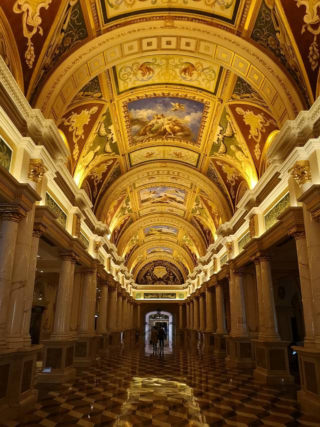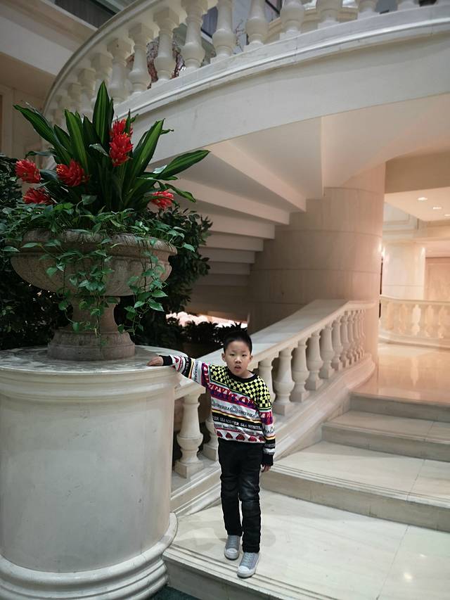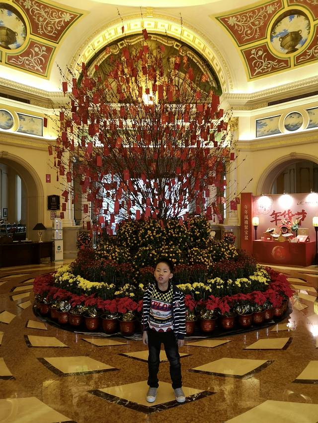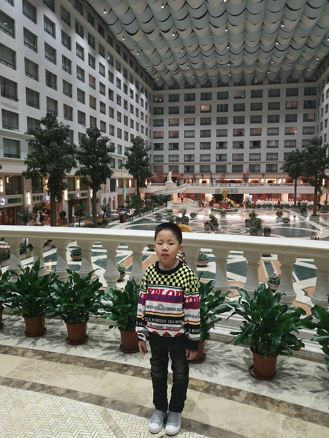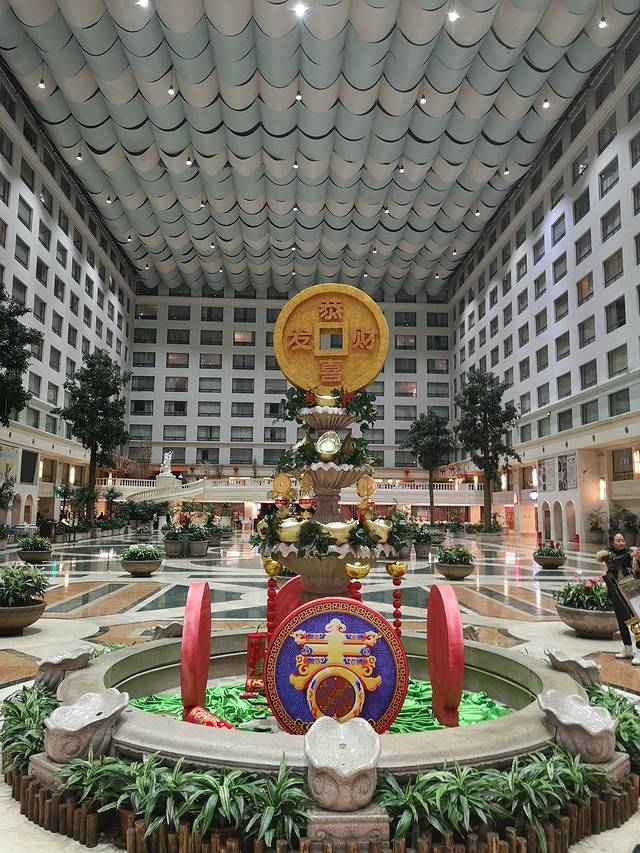 酒店大堂宽阔堪比足球场,节日装扮气氛浓厚。
