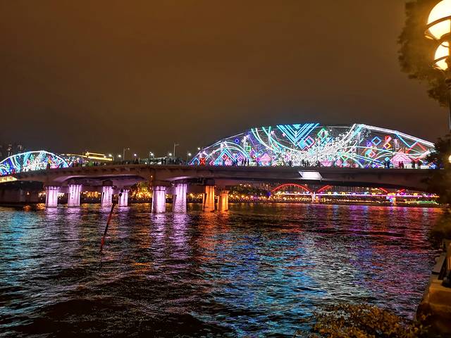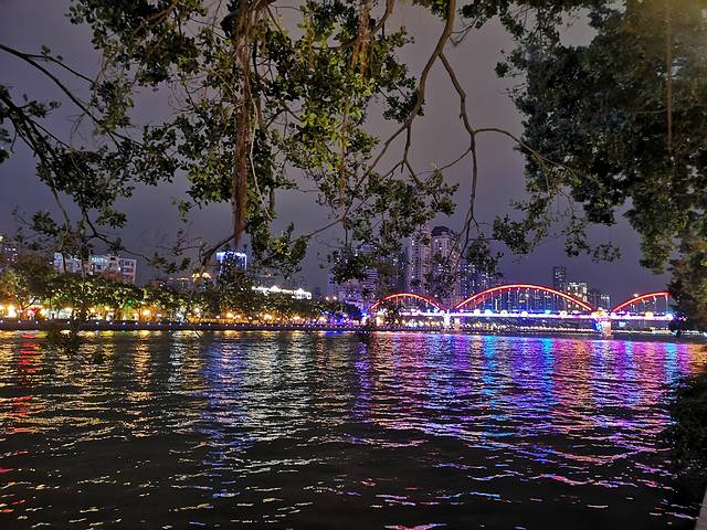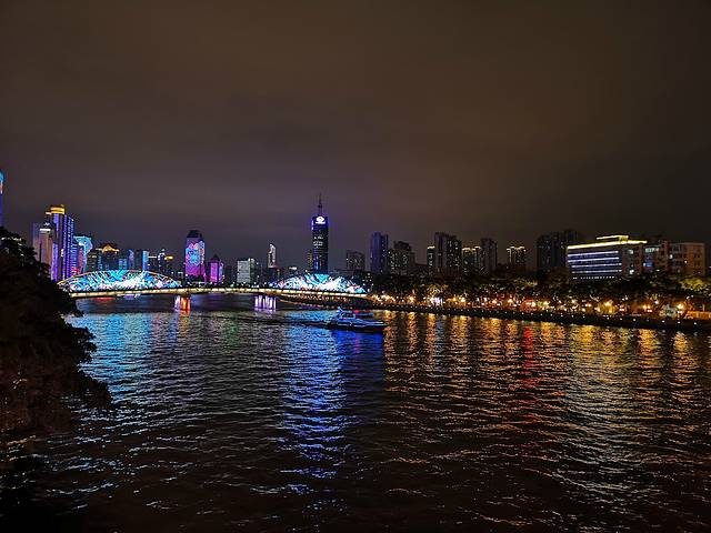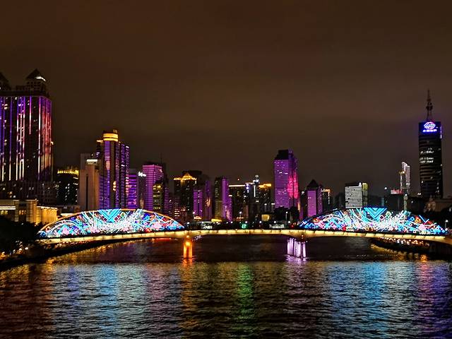 珠江全长2400公里,是我国七大河流之一,也是南方最大水系。2019年2月12日夜色下我们来到了广州珠江夜游天字码头,珠江两岸到处都是来自全国各地的游客。我们在珠江大桥上看到了两岸的高楼大厦和广州塔闪烁着璀璨的灯光,时而一大片红色,时而一大片紫色,倒映在江水中,江上微风习习,让江水泛起波浪,给人一种奇幻梦境的感觉,我们玩得很开心。
