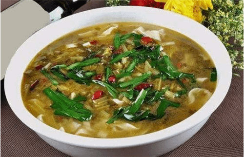 浆水面是陕甘地区传统特色小吃。相传该名是由汉高祖刘邦与丞相萧何在汉中所起,其味酸、辣、清香,别具一格,浆水菜的菜以芥菜(花辣菜)为佳,是夏季常见小吃,浆水菜的菜多为芹菜。尤以敦煌,天水市甘谷县礼辛镇李坪村浆水面出名。吃面时,加上浆水、大油、香菜、葱花等,吃来特别酸香爽口。夏天的浆水,还常常当作预防中暑的清凉饮料,直接饮用。陇上气候干燥,土地含盐碱过多,所以常食味酸性凉的浆水,不但能中和碱性,而且还可以败火解暑,消炎降血压。夏日常食有利健康。它含有多种有益的酶,能清暑解热,增进食欲,为夏令佳品。三伏盛暑,食之,不仅能解除疲劳,恢复体力,而且对高血压、肠胃病和泌尿病有一定的疗效。