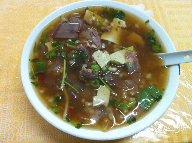 牛肉小饭,是张掖本土早餐中的一种,受众度很高,而且只有张掖才有。将和好的面,切成小丁,然后放入牛肉高汤里煮,汤里有牛肉片,豆腐和粉皮,出锅后撒上香菜和葱,飘香四溢。算是张掖本地人早餐届不可逾越的三大山脉中的一大。