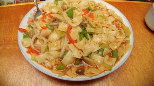 尕面片是青海人面食中最普遍而又很独特的家常饭,相当于华北地区的揪面片。在经历了漫长岁月之后,不论是城镇还是农村,尕面片成为了普及又享有盛名,品种繁多,滋味各殊的独特面食了。按尕面片形状、配料和烹任方法不同,有做工细致纤小玲城的"指甲面片"、"雀儿舌头";有不带汤而用炸酱拌吃的"烩面片";回族人民清真面食中还有和牛羊肉、粉丝、辣椒混炒的"炒面片";农村里还有常吃的"菜瓜面片"等。所以在旅途疲惫时,找一家饭店吃一碗热腾腾的面片,驱赶一天的疲惫。