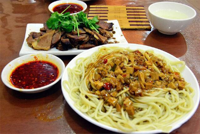 张掖当地还是以面食作为主要的食物来源,张掖的搓鱼面是当地最出名的面食了,搓鱼子是当地人的叫法,也有叫搓鱼儿的,是搓鱼面的俗称,搓鱼子的形状中间粗、两头细,长约2-3cm,非常像小银鱼,因此而得名。吃的时候有两种吃法,一种是家常,面煮好后捞出,过凉水后要浇上卤汁配着卤肉、凉菜拌着吃,或者将煮好的面直接与蒜苗、肉或者其他蔬菜,炒在一起。