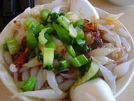 夏天在张掖街巷中,别具风味的小吃比比皆是,遐而闻名的鱼儿粉便是其中之一。鱼儿粉是用精细的蚕豆淀粉制作的小吃,形似小鱼,颜色有白有红,配上调料,小菜,活象一条条小鱼在碗里游动,吃起来清凉、润滑,既充饥又解渴,是一种地道的风味小吃。