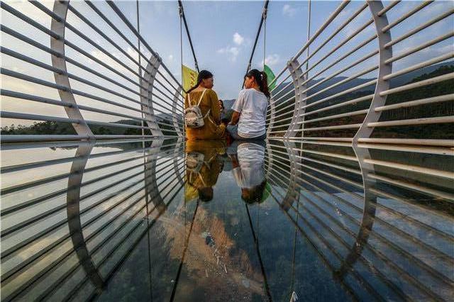 到达玻璃天桥,景区工作人员会引导穿上鞋套。另外,走上玻璃天桥之后,就不能再折回来了,要勇敢走到终点。要注意小朋友的安全,不要松开拉着他的手,让他独自行动。