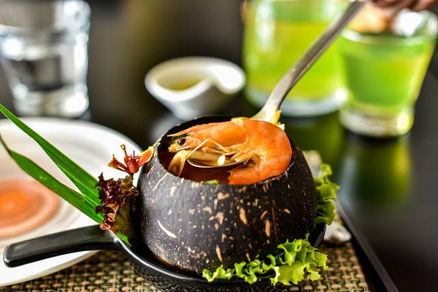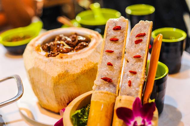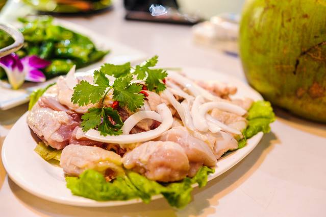 嗲嗲的椰子鸡最代表的菜品自然就是椰子鸡了,采用原汁原味的椰果的汁液作为佐料来煮文昌鸡肉,加上一些香料以及素菜即可做成一道香喷喷的文昌鸡了。大概是因为用了椰汁,所以这里的文昌鸡顾名思义的就叫作椰子鸡了吧?嗲嗲的这一词可能就是每家餐厅特色的名字或者是椰子鸡的品牌。嗲嗲的椰子鸡味道偏清淡,更加适合江浙沪地区的游客来此消费,或者是比较喜欢清淡食物的游客也适合选择椰子鸡。