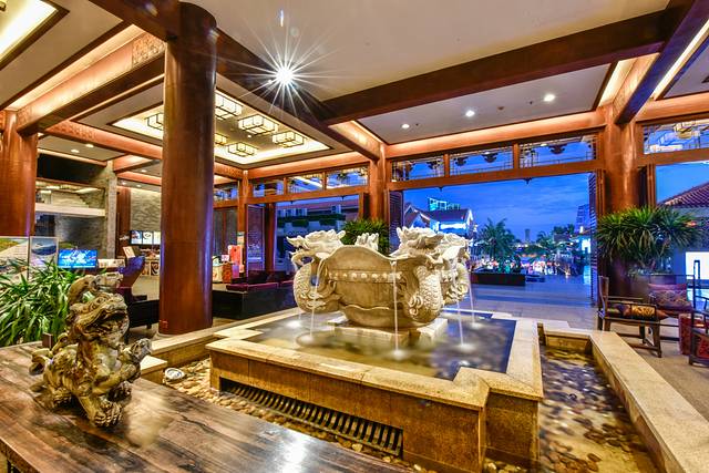 当我们下车到达酒店大厅后给我的第一印象是宽敞、明亮、舒服而大气。海滨特色的设计风格与中国传统的特色居家风水理论的运用在此可谓是淋漓尽致了。