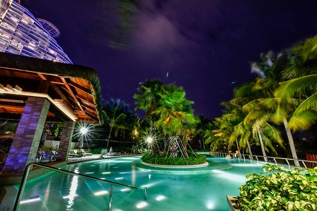 当你看够了白天的海棠湾红树林酒店后,那么就在夜晚下看看彩灯装饰下的海棠湾红树林吧,也许会更有国际大酒店的范儿。