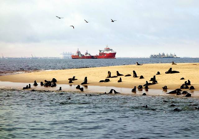 纳米比亚的旅游业很发达,沿着绵长的大西洋海岸线,衍生出各式各样丰富多彩的海洋活动。例如海豚游、沙漠探险、海钓、冲浪、滑沙、沙漠摩托、滑翔、小飞机观光等等。我们在鲸湾只有一个整天,所以首选择最经典的活动——海豚游。照片摄于海豚游的码头。