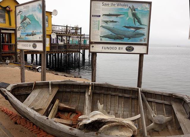 鲸湾游艇码头的岸边,摆放着一些巨大的鲸鱼骨。