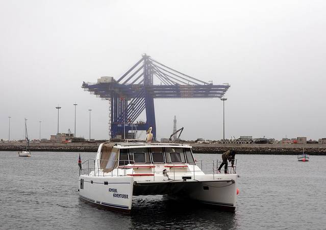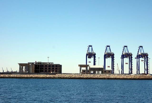 码头旁边就是那些标志性的巨型塔吊,从很远的地方就能看到。据说中国正在这里建设码头。