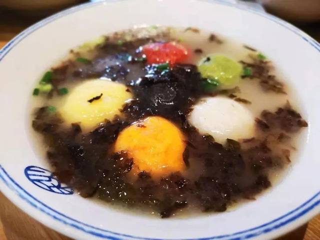 来秋官郎吃鱼丸,一定要点上一碗吃尽全店特色的全家福,鱼丸、肉燕、地瓜丸、鲨鱼丸、鳗鱼丸、墨鱼丸,每一颗丸子都凝聚着正宗的福州味。