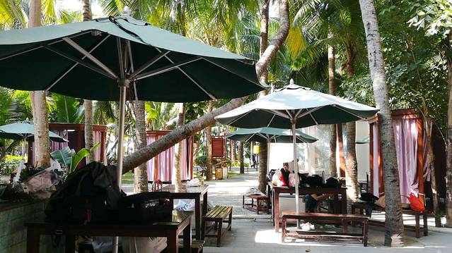4、 椰树掩映的椰林吧,有专门的婚纱摄影工作和休息区,以方便婚纱摄影的换装、化装、休息。