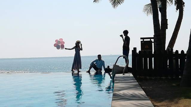 8、 小月湾婚纱摄影区,浪花如雪的海岸,青波入海的泳池,温馨浪漫的栈桥,一切的一切仿佛天造地设:我的爱都是为你准备的,我的情都是被你陶醉的,我的心醉醉梦醉醉,和你永相随。