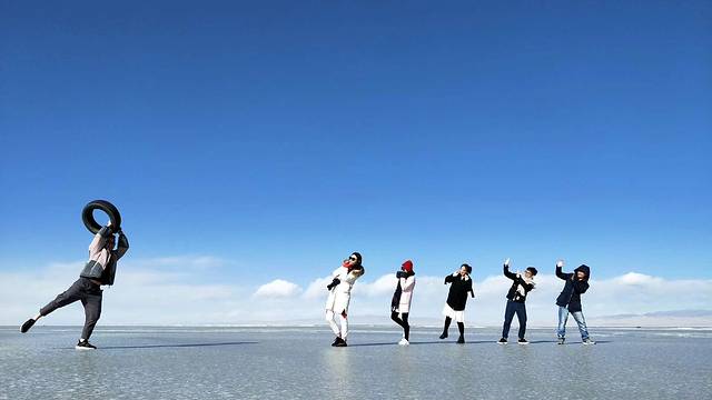 茶卡盐湖“天空之镜”,被国家旅游地理杂志评为“人一生必去的55个地方”之一。在一个晴朗的日子,走进这一望无际的白色世界里,眼前亮晶晶闪动的不是水,而是盐;漫步湖中,湖与天成对称,你与自己的影子对称,站在湖中的你,便会看到另一个一模一样的你自己,像走进画里,走在天地之间,空气纯静,天空很蓝,远处是雪山,脚下是纯白的眼睛,湖面上的水倒影着天上的白 云和 你的身影,像一面天然的镜子,远处的雪山倒影在湖面,形成水天相交、盐湖与雪峰交相辉映的青藏高原独特自然风光。大概只有你亲身走进其中,才能真正感受这种震撼人心的美丽。