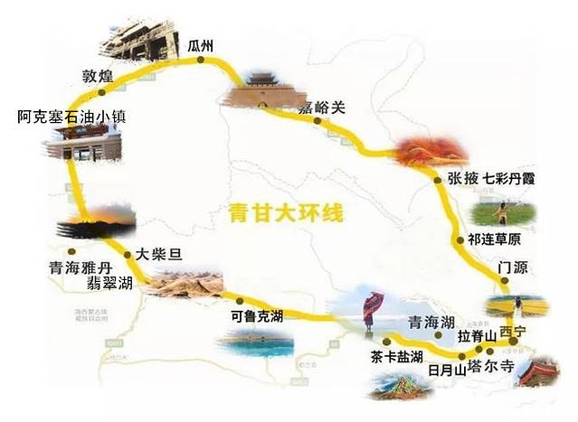 四天小环线全程的著名景点有塔尔寺、拉脊山、青海湖、橡皮山、茶卡盐湖、七彩丹霞、卓尔山、祁连山草原、达板山、万亩油菜花等。 自然景观和人文景观结合,景点观赏性丰富而不单调!