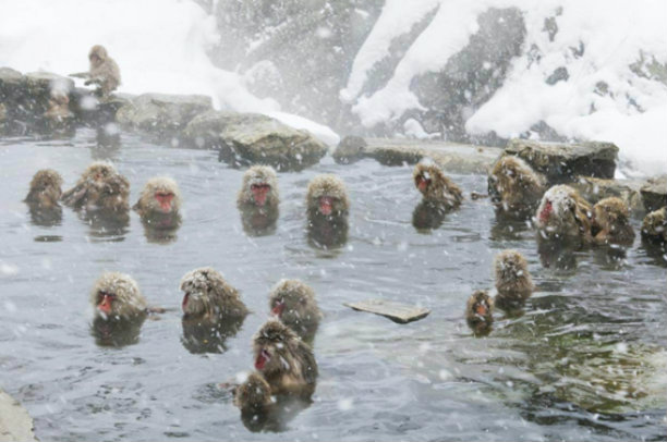 为您介绍的第二个是地狱谷野猿公苑。这里一年中有三分之一的时间被雪覆盖着,还被陡峭的悬崖所包围,环境十分恶劣。目之所及之处能见到温泉的滚滚热气在徐徐上升,因此被称为“地狱谷”。然而,在这环境下却生活着一群从很久很久以前就驻扎在这里的猿猴,对于猿猴来说这里大概是乐园吧!