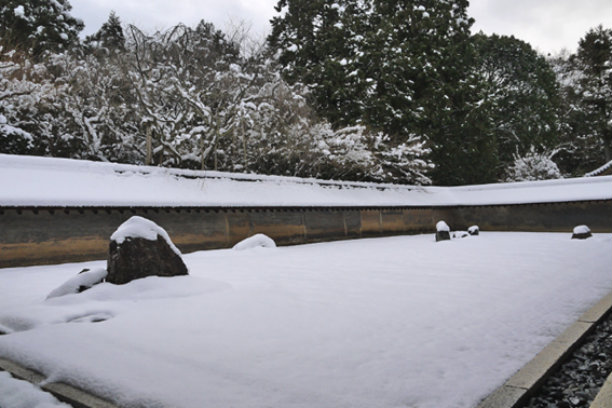 冬天为庭园更添一层情趣。在寒风凛冽却又空气清新的环境中,站在外廊看向庭园,不一会儿便会走神,仿佛忘了时间的流逝。想欣赏龙安寺的那不一样的味道的话,推荐在可能会下雪的1月下旬到2月左右前来