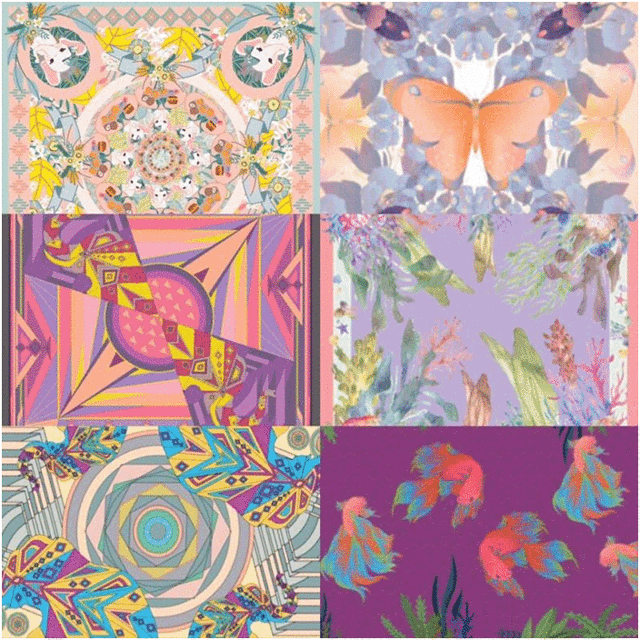 除了泰国特色的元素之外,曼谷宝珍也有它软萌可爱的一面,就像一个可爱的泰国少女。这一个系列虽然图案不同,但都是以粉色为基调,搭配上可爱的粉色幼象,庞大的热带蝴蝶,或是以同色系的拼接格子和繁花为底,亦或是搭配上一点点俏皮的黄色,赏心悦目,真是足够可爱!
