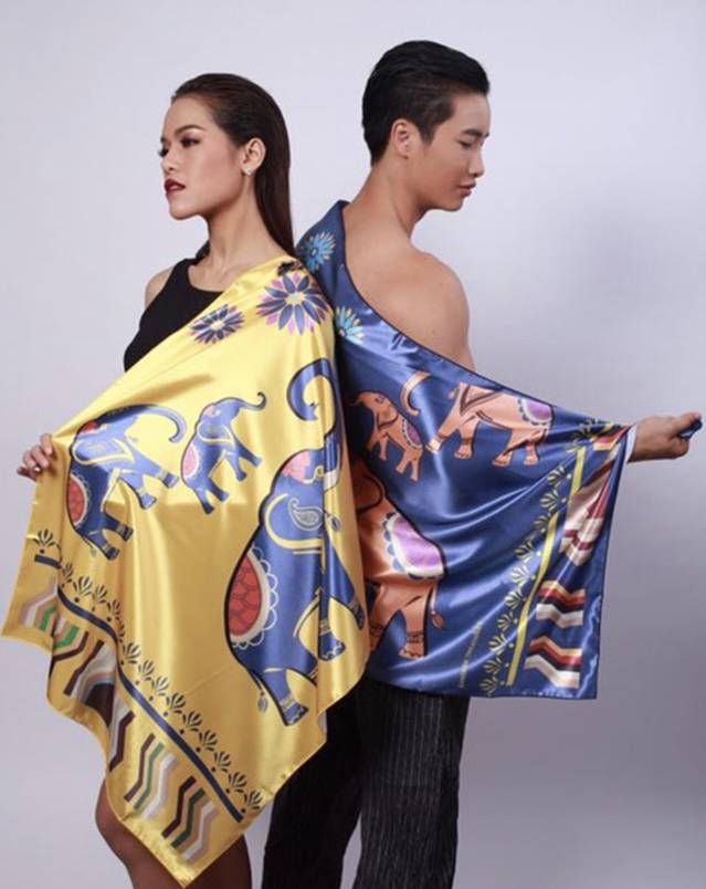 还有这个撞色的大象图案围巾,设计师的初衷就是在表现泰国特色的前提下融合时尚元素,再加上些许泰国传统纺布花纹,制造成全新的时髦艺术品!既可以做围巾,也可以挂在墙上作为装饰,色彩新潮又大胆,真的非常抢眼!!