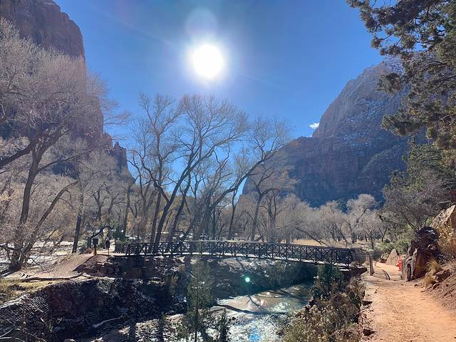 第五日:本日连续走四个州,最后到达锡安国家公园,晚上住雪松城,温度比加州低了20度。