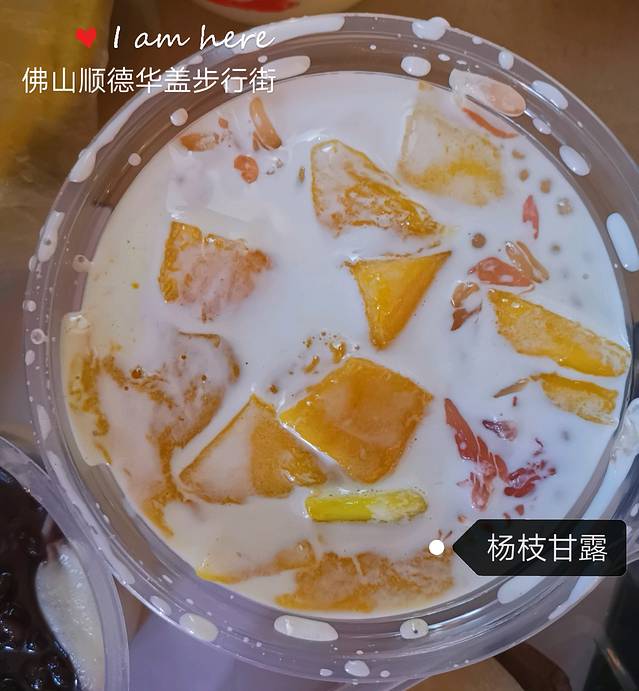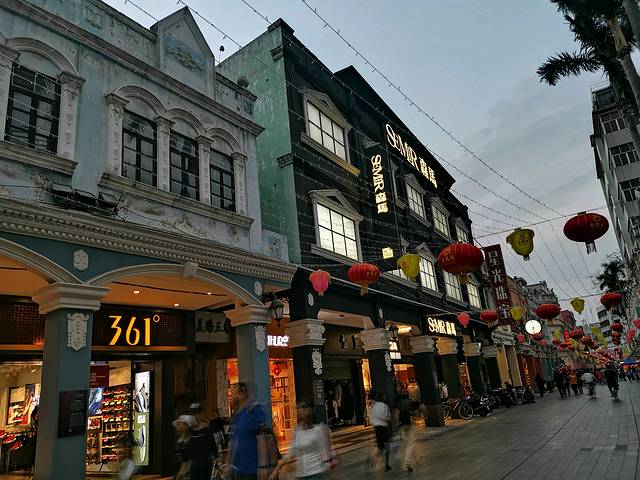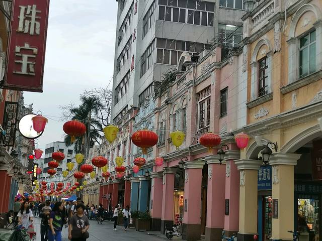 华盖路步行街是顺德大良唯一的一条商业步行街,全长约600多米,如果不停下来吃东西,安排30分钟游玩时间就足够了。街道两旁是明末清初骑楼特色的岭南西洋建筑,主色调为紫,色、红色、粉红色、黄色、蓝色,整条大街色彩缤纷,靓丽夺目。道路两旁还有一些西式风格的绿化盆栽,和西式铁登,然而街道上面则挂满了一个个红色的小灯笼,中西合璧,显得很是热闹,还有两家顺德驰名的双皮奶老店:仁信老铺和民信老铺,都很受游客欢迎,喜欢甜食的可以试试。还有一家细妹牛杂没有吃饭很可惜了,双皮奶和芒果雪媚娘很好吃!我是很喜欢的,两个在一起吃就有些甜了