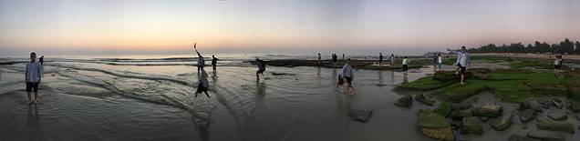 没看到日出看日落 贝壳沙滩的日出和五彩滩的日落 但是我们不是在五彩滩 是在旁边的一个沙滩 很美了 为了拍照冷得全身发抖