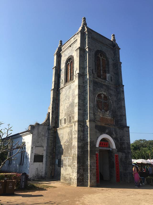 买的8:30的船票 但是岛上有大雾延迟了 然后客栈老板接客人的车很忙 所以都12:40才到客栈 在民宿吃了泡面就午睡 一点的太阳很毒辣 四点起床出门 电瓶车出租完了就走路去逛 住的地方离教堂 贝壳沙滩很近