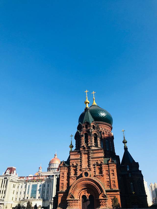 索菲亚教堂⛪️建于1907年(光绪三十三年)沙俄拜占庭式纯木质结构,后修善玩滴砖木结构!