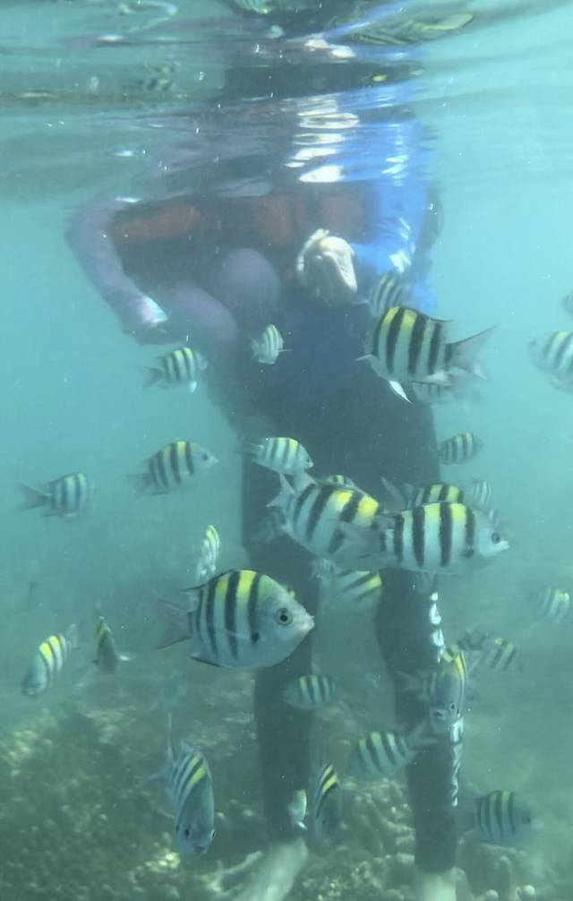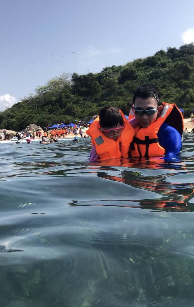 手机套了了防水套,在水下拍了几张照片~被小鱼围绕的感觉真的太好了,穿着救身衣,在水面上浮着待了好久,要不是带着娃,真不想那么快回到岸上…