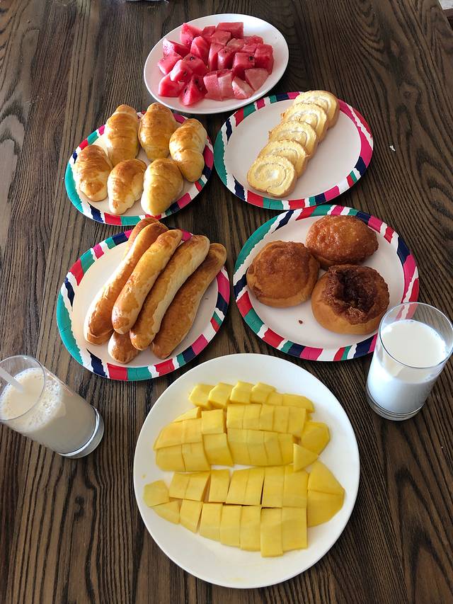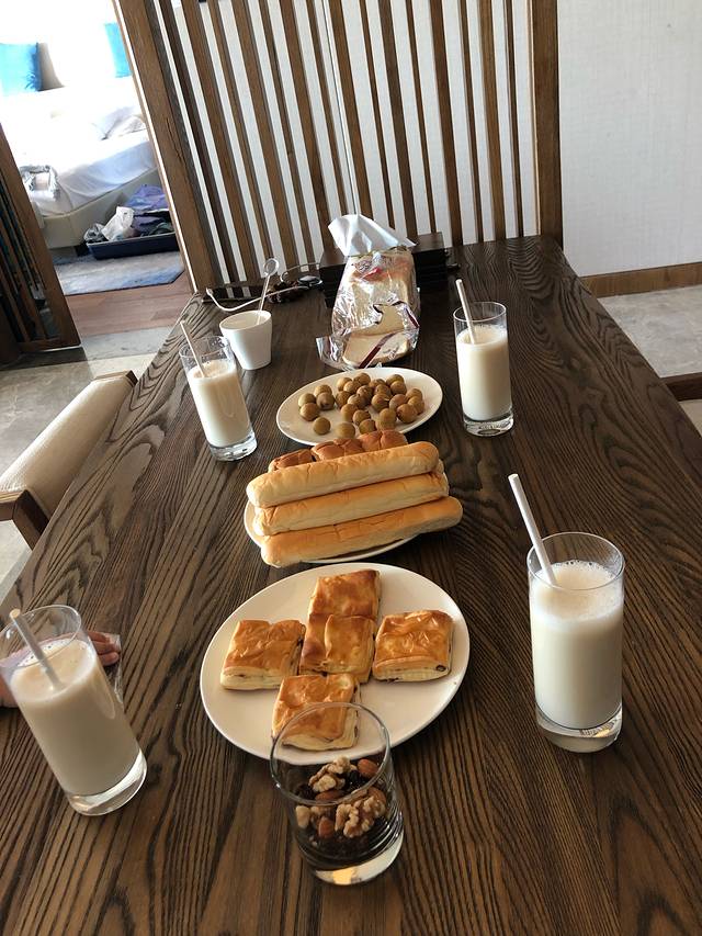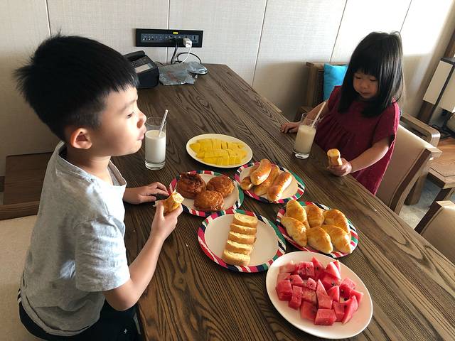 订的酒店没有含早~小妞和妈妈一起准备的早餐…