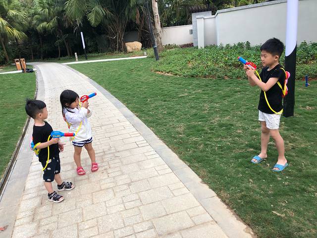 一路走一路打水仗的小朋友们,不亦乐乎~