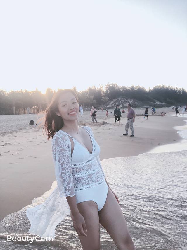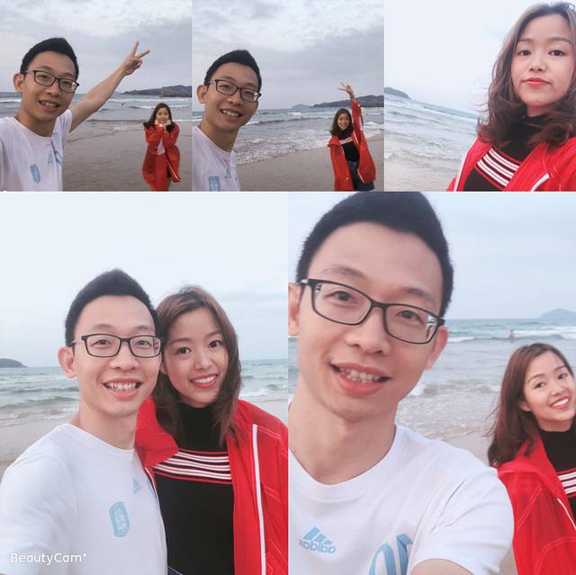 黄昏的海滩依然好美,来两张自恋照,嘻嘻…