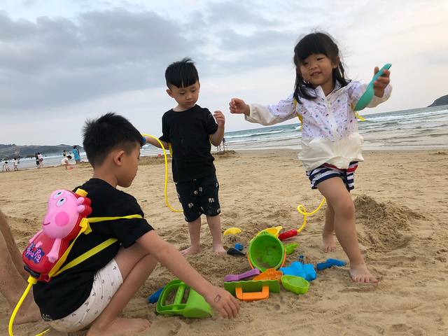 孩子对沙滩真的好无免疫~几个娃一到沙滩,就玩起来了。