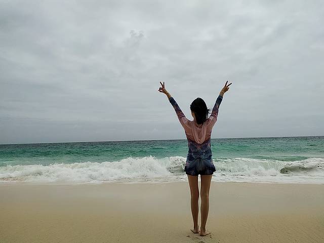 你可以用脚丫感受细腻的沙子,可以去寻找最美的贝壳,也可以一个人坐在沙滩上,望着前方,什么也不做。